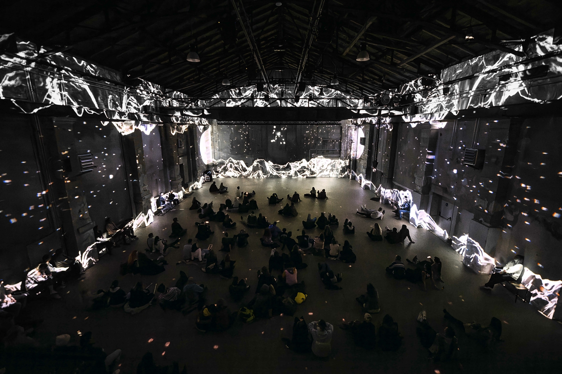 Beginning with high-contrast black and white imagery, it explores the relationship between light and shadow. As the performance reaches its peak, a burst of bright colours illuminates the scene, symbolizing a moment of clarity and insight. Complementing the visuals, the music and sound effects are equally integral to ENTøPTIC. An ambient auditory landscape enhances the immersive experience, with carefully crafted sound effects that echo the visual transformations.