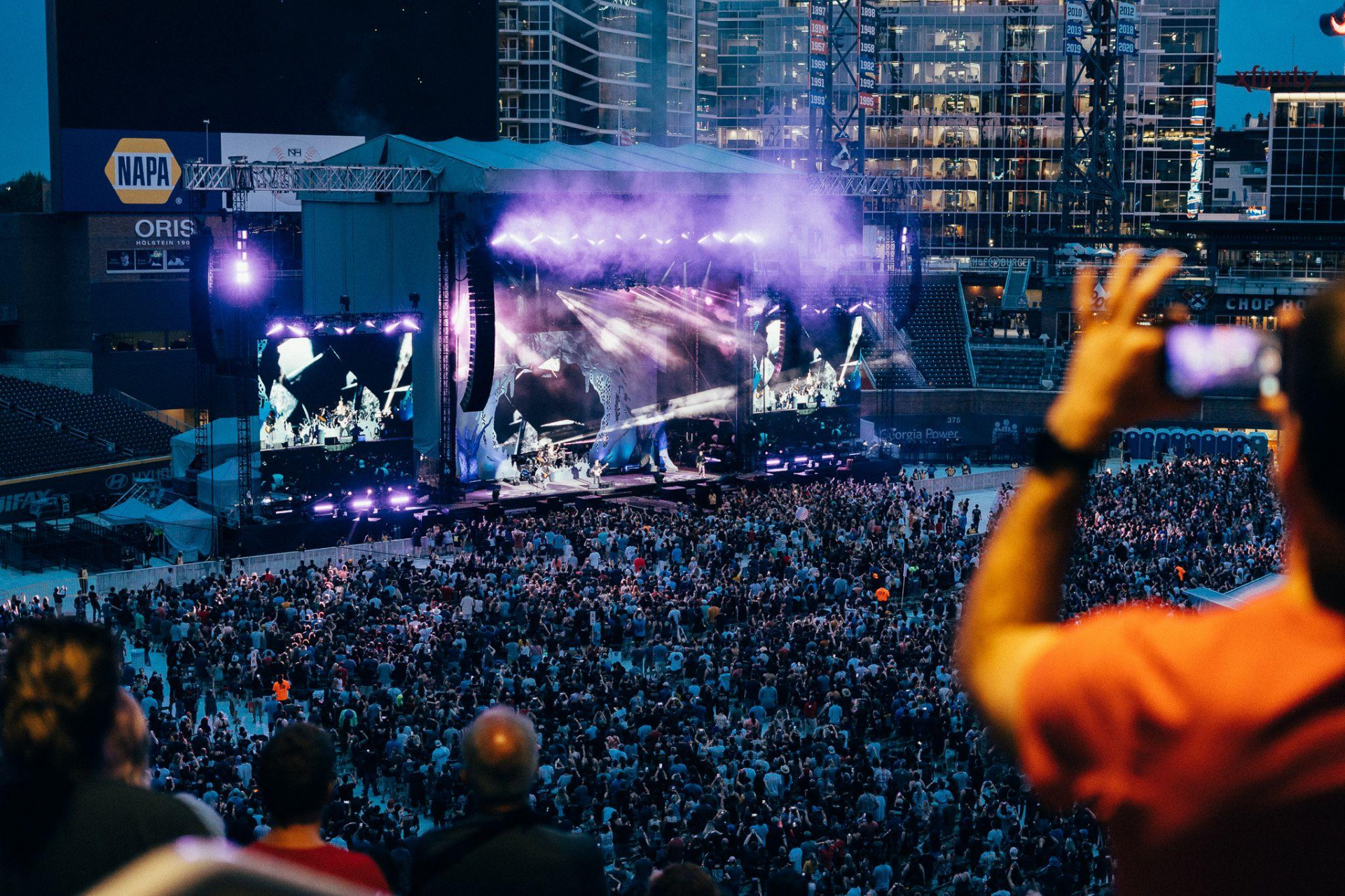 For these shows we used optical tricks like set extension illusions to convey the theatrical set design we envisioned. A true example of when theater meets rock show, complete with enough pyro to see for miles. We lit bass guitars and pianos on fire–the rest is history.