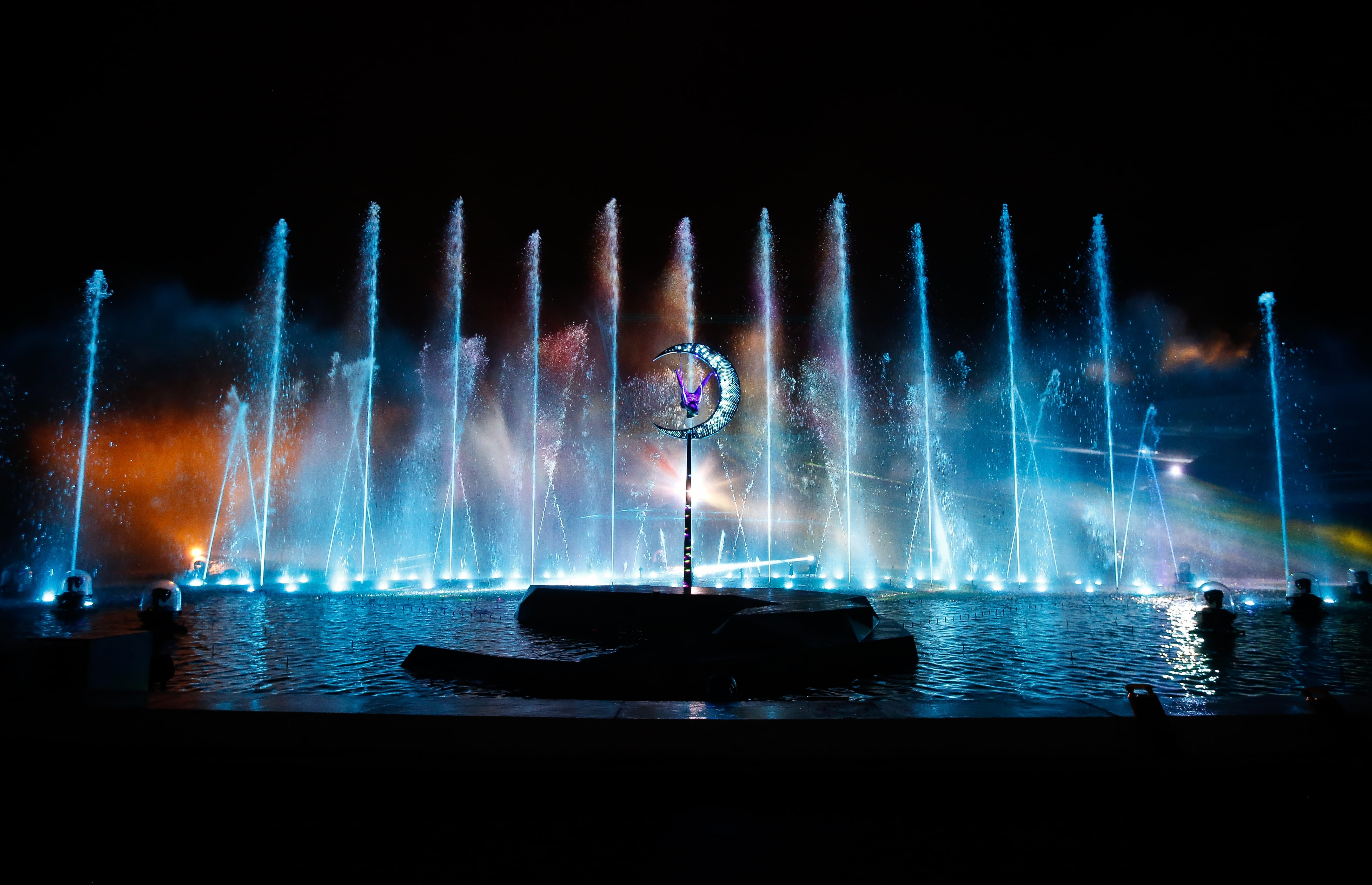 Over a 7,000-square-meter lake, a big-bang of visual, aquatic and pyrotechnical effects merge to bring forth this aquatic fairytale for the entire family. In a constellation of poetic vignettes, La Forge Aux Étoiles invites young and old alike to witness first-hand the friendship between a human girl and a cosmic giant with his feet on Earth and his head in the stars.