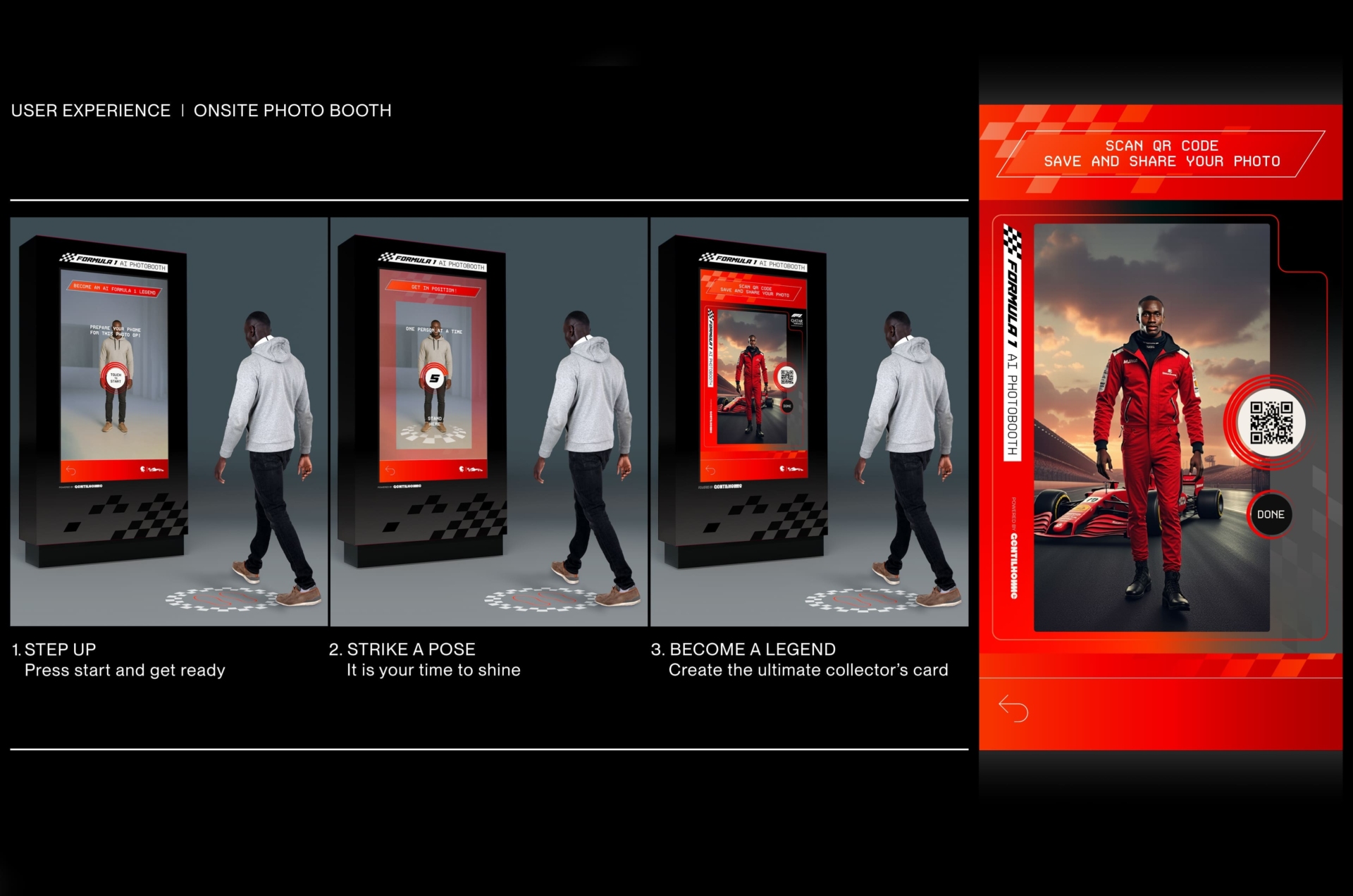 The AI Photobooth is built as a sleek, self-contained module designed for fast deployment and instant charm. We first customize the design according to your activation and then you just need to plug it in, power it up and watch it go. Its standalone design adapts seamlessly to short pop-ups or permanent installations, with a workflow engineered for speed and reliability. In less than a minute, guests move from capture to reveal, experiencing a smooth, high-quality transformation powered by a system built to perform consistently wherever it lives.