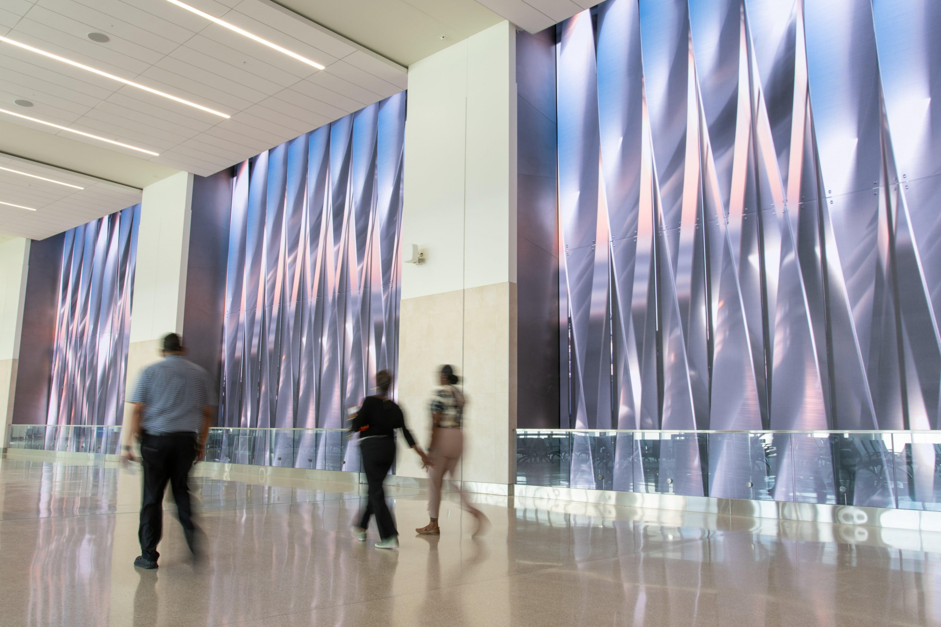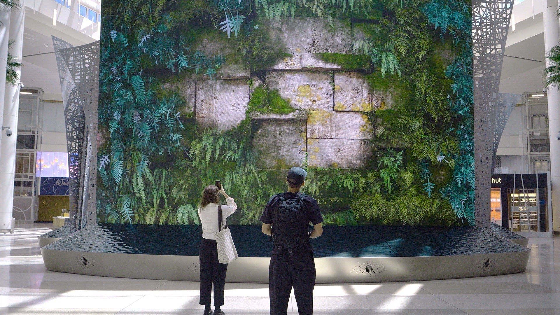 Le «Moment Vault» est une installation interactive où les publics sont immergés à 360º dans des mondes créés en Unreal Engine. Jusqu’à 30 personnes en même temps peuvent être détectés par un système de captation de mouvement 3D en temps réel. «Windows on Orlando», un triptyque d’écrans de 32 pieds de hauteur et de 114 pieds de large, crée l’illusion d’une fenêtre monumentale donnant sur l’extérieur du terminal, à travers laquelle se déploie une série de paysages panoramiques.